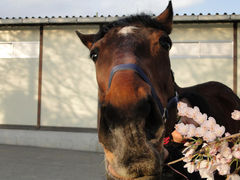 お馬さんと桜の素敵な写真を撮ろうと思って桜に近づけたら、馬って桜も食べるんですね(--;)